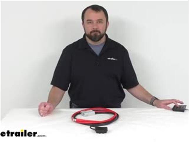 Hi, everybody. Andy here with etrailer.com. Today we're just gonna take a quick look at this Superwinch front wiring kit, quick connect to terminal end. Now, this wiring kit allows you to quickly connect the switch and wiring harness of your winch to power at the front of your vehicle. These two to four gauge, five-foot-long power and ground wires with these loop ends connect to your battery. And this included dust cover is going to protect the terminals when not in use.