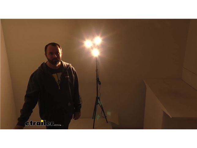 Hi, everybody, Andy here with etrailer.com. Let's take a look at this Performance Tool 3-Wing LED work light with tripod. Now, as you can see, I'm starting my video with my studio lights off and just using the light here. And I just wanted to show you right up front just how bright this light is. This shop light has three adjustable LED panels that's going to let you project light in multiple different arrays. So this light is going to be a great choice if you are looking for a versatile and high performing lighting solution, especially for your work environments.