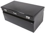 72" Long x 15-1/2" wide x 20" tall. Topsider-style tool box; Brite-Tread aluminum; locking paddle handles; drop down doors with stop chains; V-stiffeners extend tool box life; sits atop truck-bed rails.