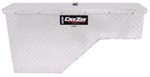 48" Long x 24" tall x 8-3/4" wide; 3.9 cubic feet; driver side fender well box with drawer slide, 3 sliding drawers and a paddle handle lock; aluminum construction