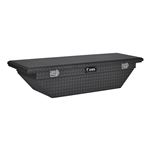 63-7/8" Long x 20" wide x 14-3/4" tall. Aluminum, crossover-style tool box provides storage space for your gear in the bed of your truck. Low profile lid and angled tub shape fits unique bed sizes. Durable powder coat finish.
